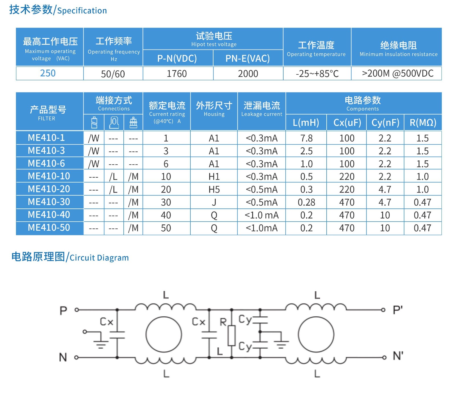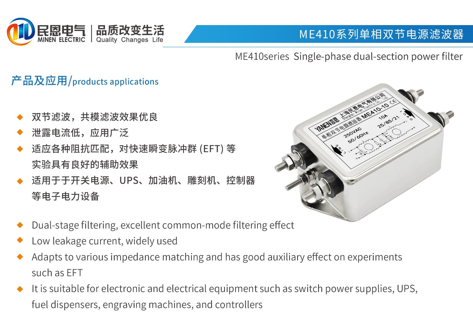 ME410系列單相雙節(jié)電源濾波器