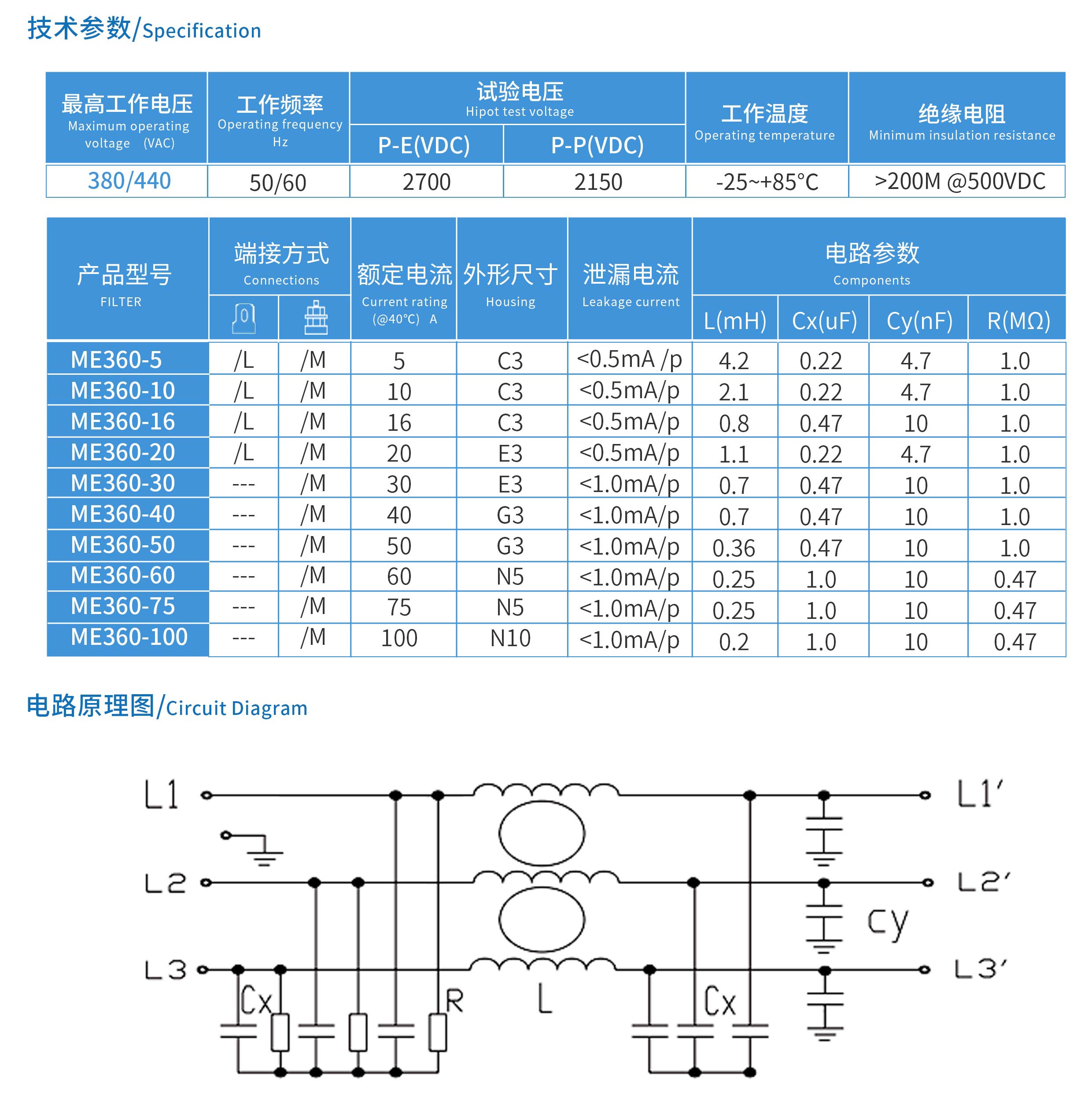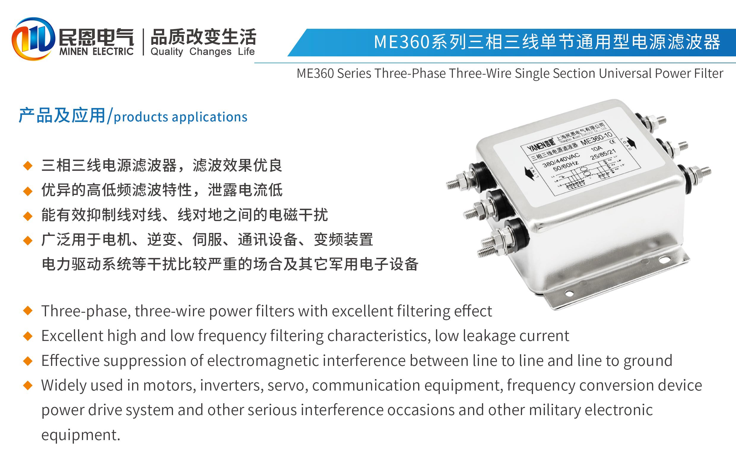 ME360系列單節(jié)三相三線電源濾波器
