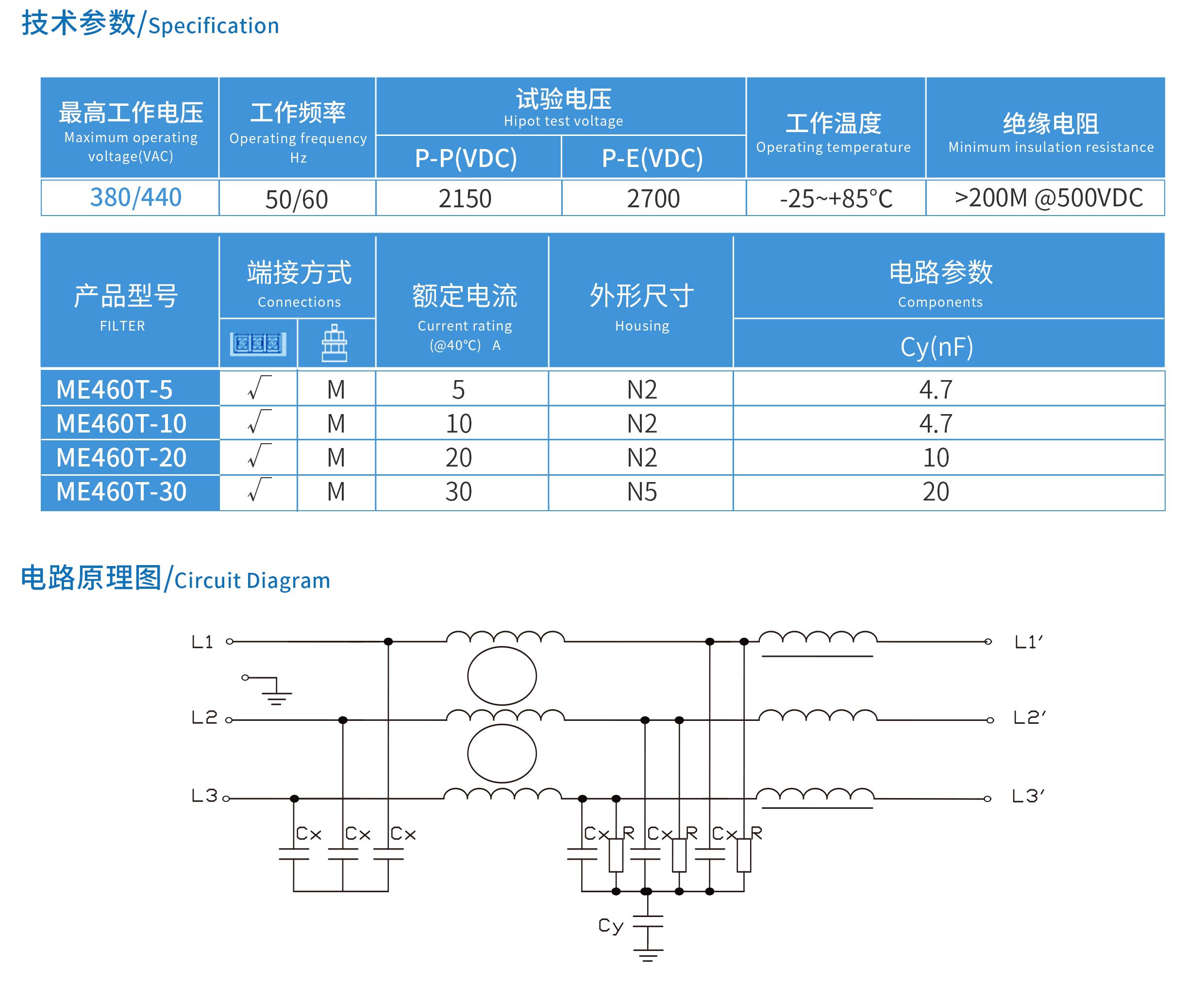 ME460T系列三相三線雙節(jié)端子式電源濾波器