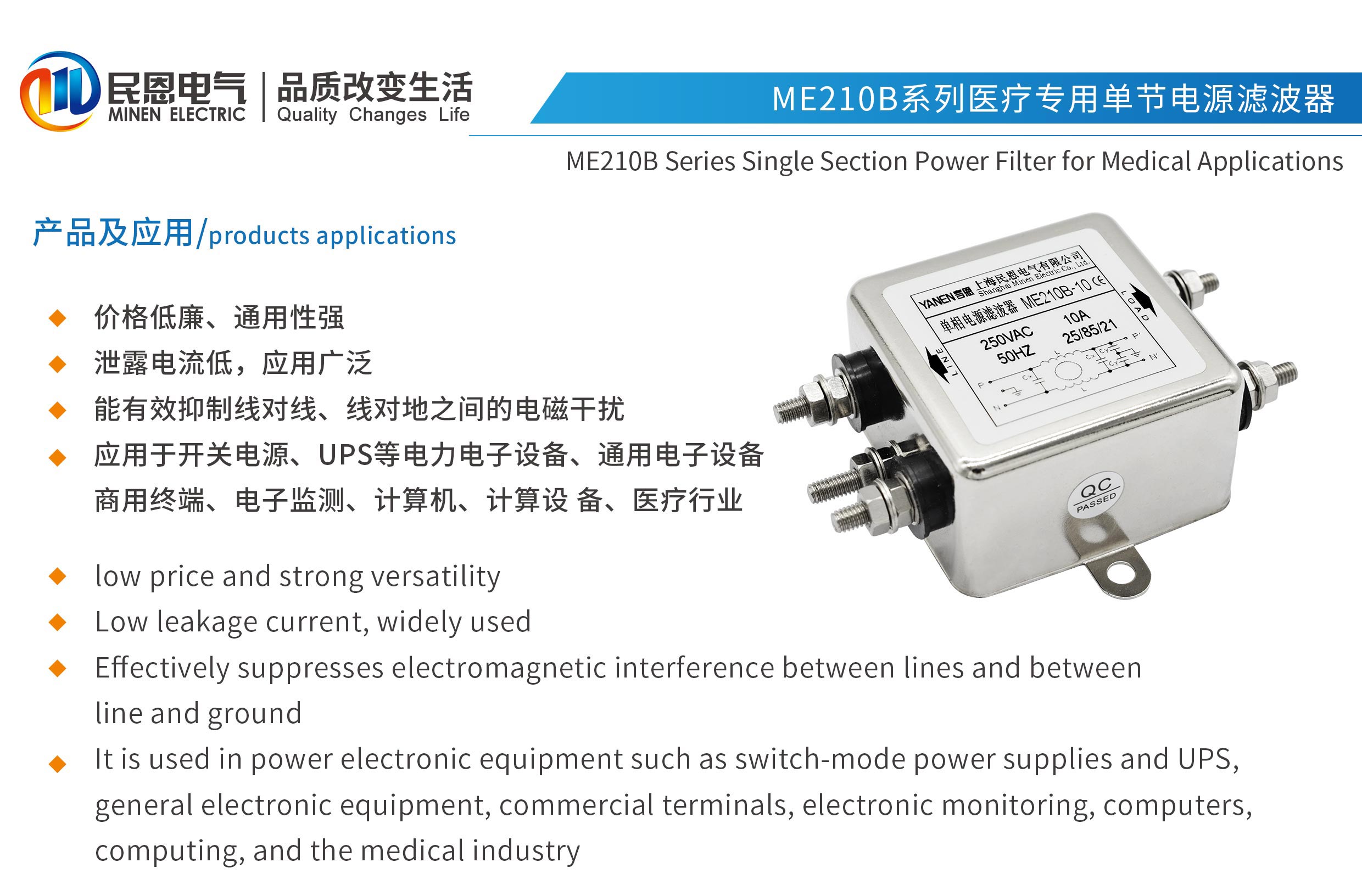 ME210B系列醫(yī)療專用單節(jié)電源濾波器