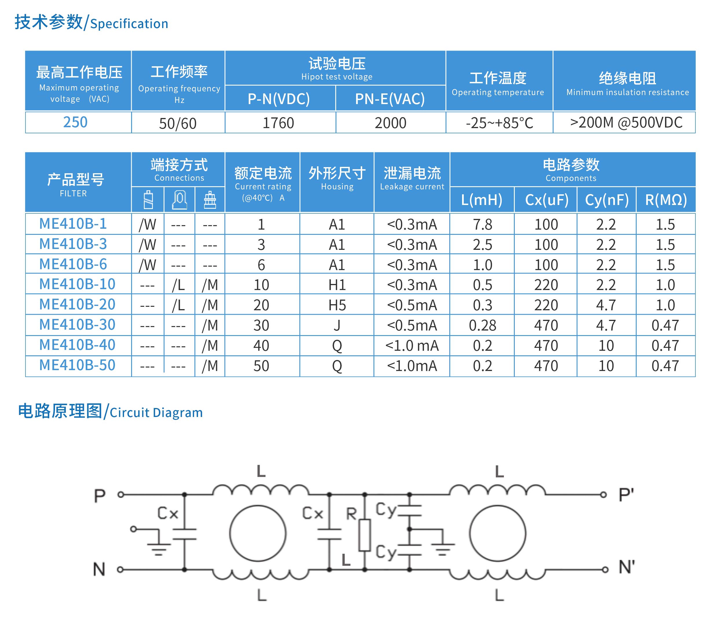 ME410B系列醫(yī)療專用雙節(jié)電源濾波器