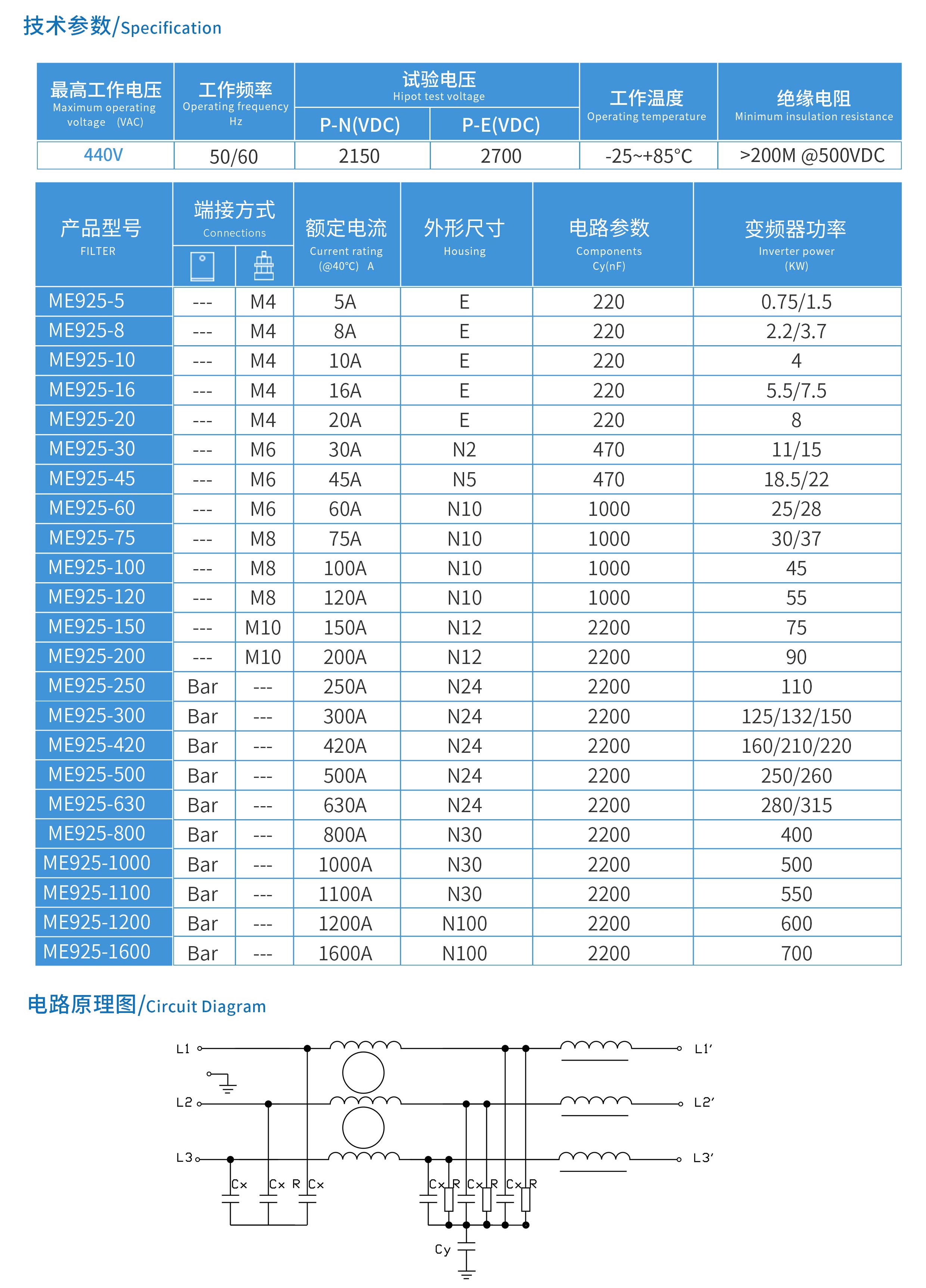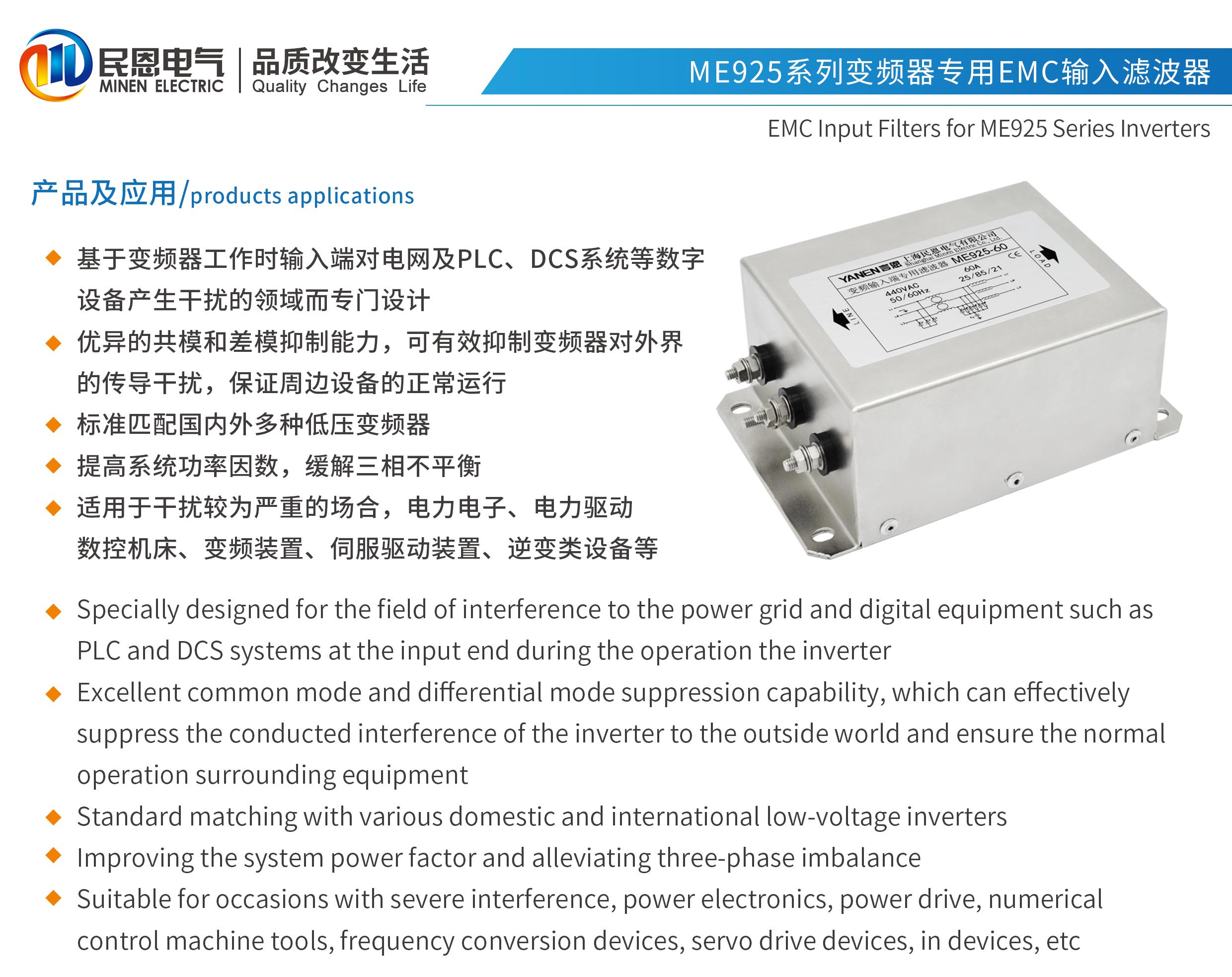 ME925系列變頻器專用輸入EMC濾波器