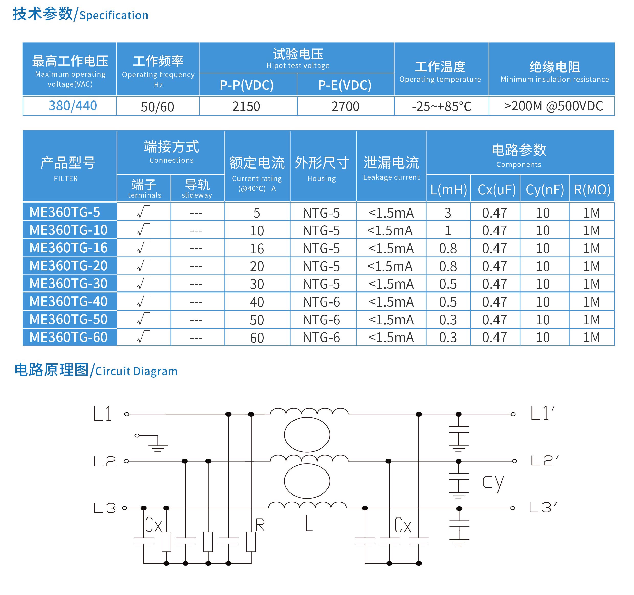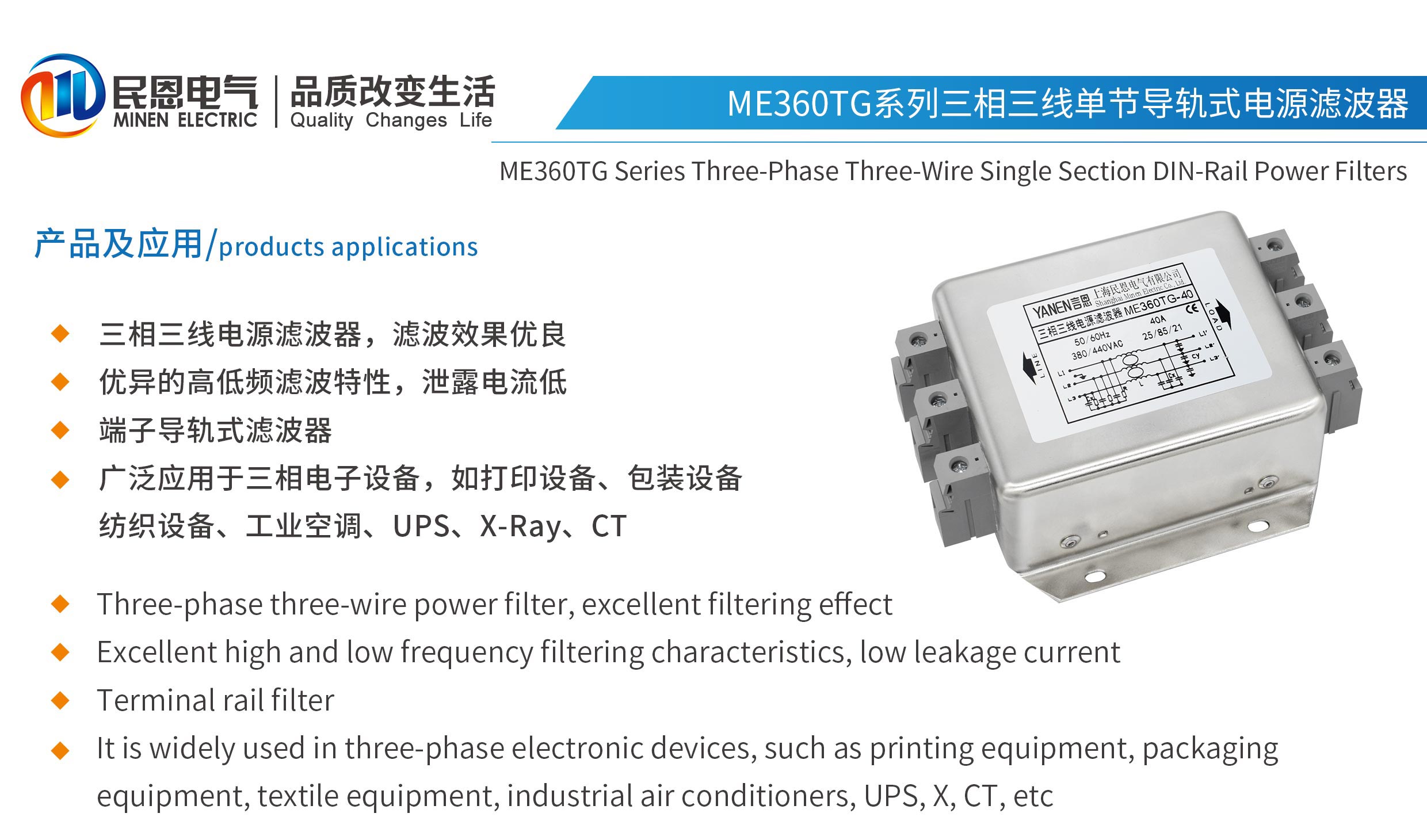 ME360TG系列導(dǎo)軌式三相三線電源濾波器